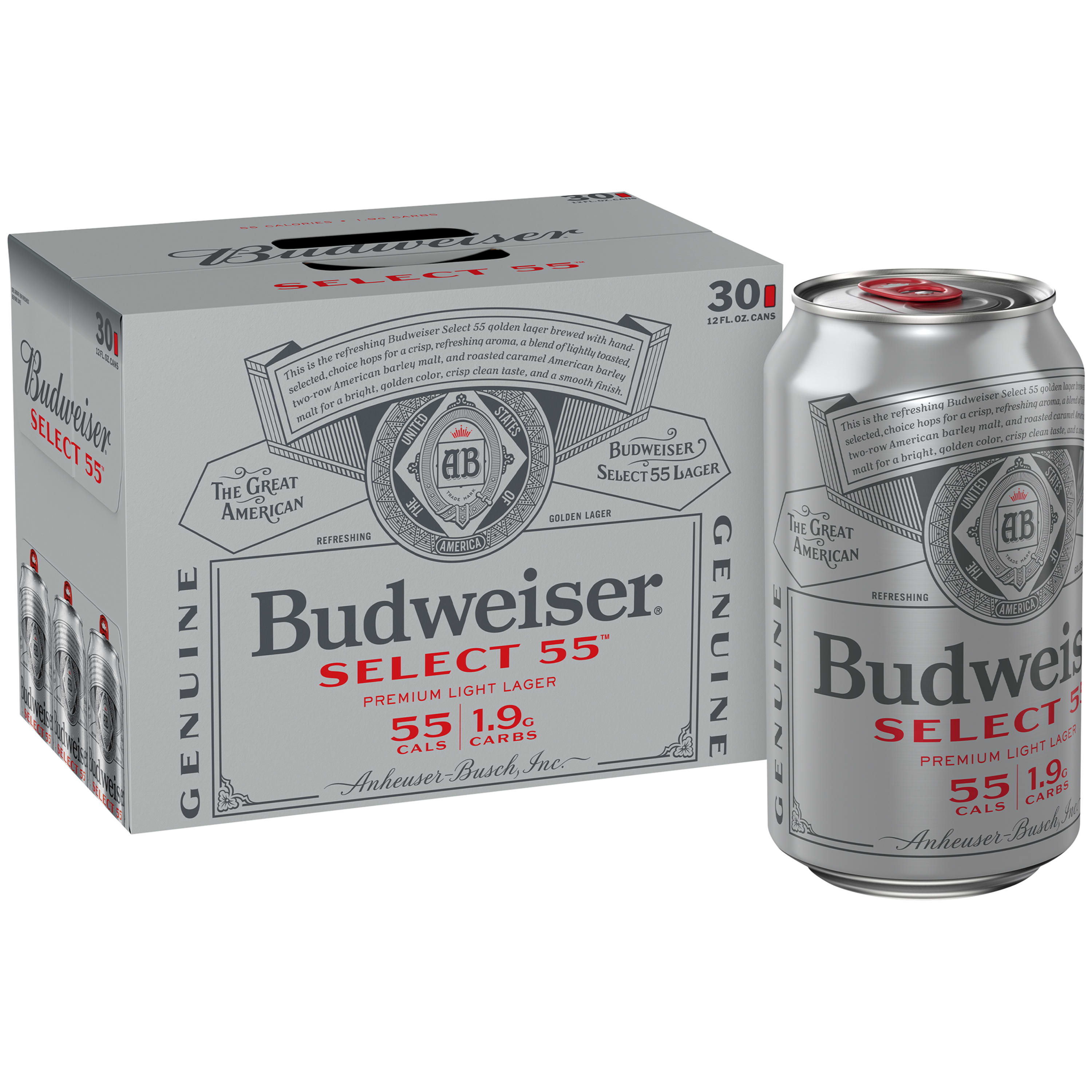 Budweiser Select 55 Light Beer 30 Pack Beer 12 Fl Oz Cans 2 4 Abv Walmart Com